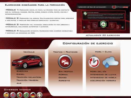 Drivesim is a driving simulator developed in collaboration of Arisoft and aimed at driving schools and road training centres. The simulator was designed and developed specifically for the client, taking advantage of client’s experience in training topics for driving schools and its knowledge of other simulators on the current market. ITCL carried out 3D modeling, programming and hardware integration of the project and Arisoft designed the scenes and exercises.